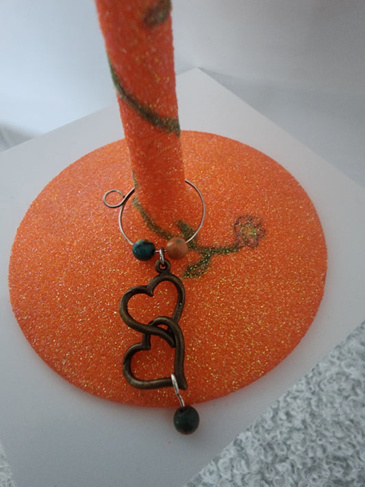 Double Heart Coral Topaz Wine Ring