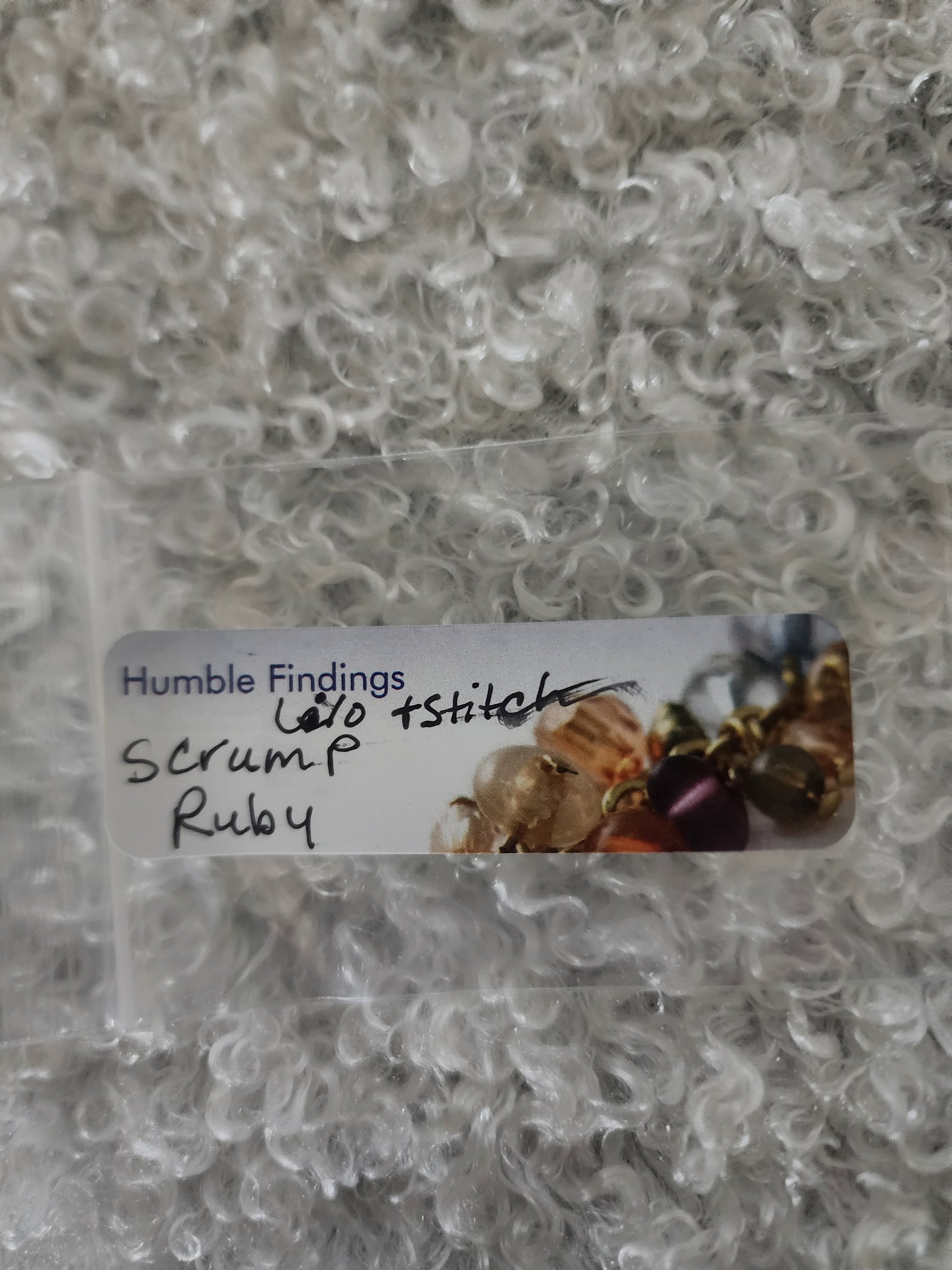 Scrump with Ruby wine ring. Dress up your wine glasses for any occasion or simply use the wine ring as a glass identifier for gatherings or special occasions. Easy to use. Simply spread apart and slip onto wine glass stem.