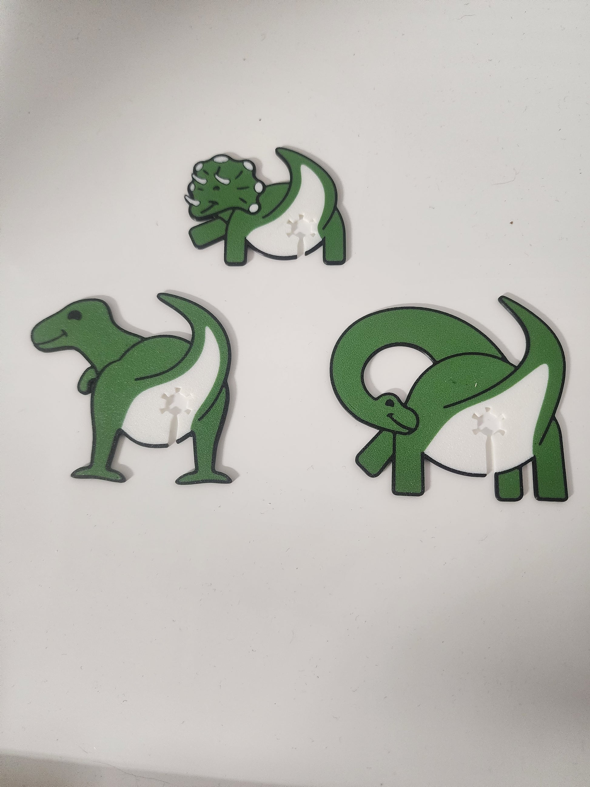 This is a set of 3 Dinosaur Bag Clips. These are 3D printed with ABS for durability. Cute addition to any kitchen.